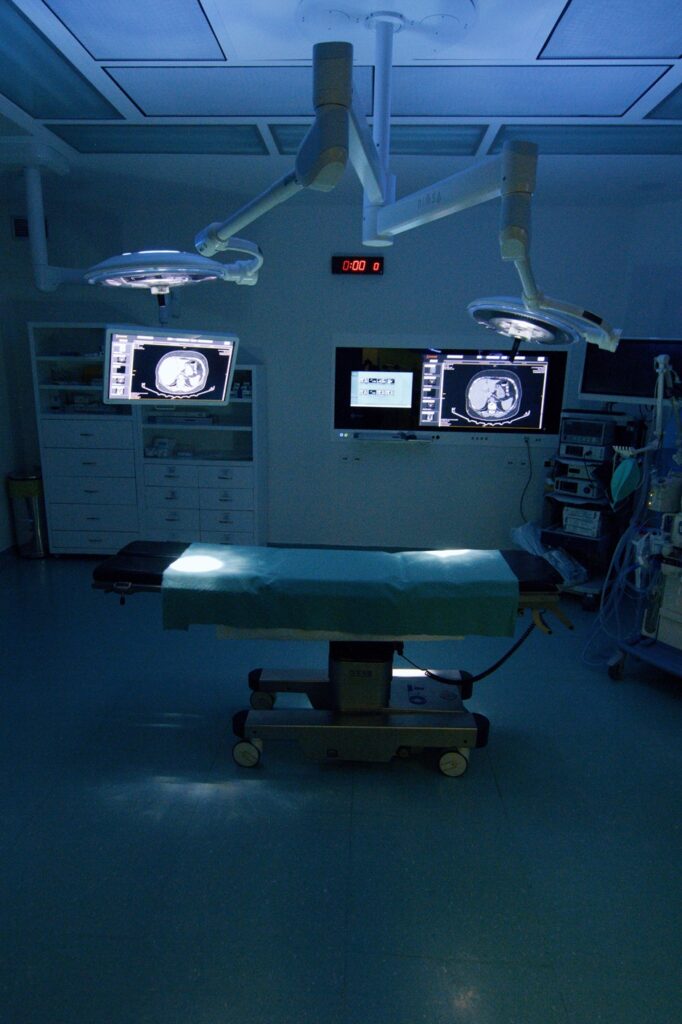 Ανάρτηση οθονών υψηλής ανάλυσης και στεγανότητας, συνδεδεμένων με τα χειρουργικά μηχανήματα για ζωντανή απεικόνιση και μετάδοση εικόνας.