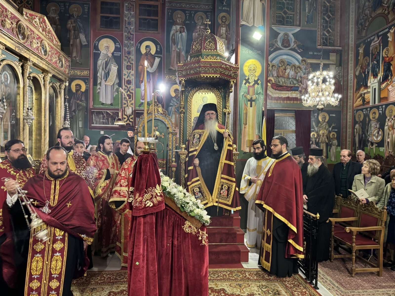 Στην ακολουθία χοροστάτησε ο Σεβασμιώτατος Μητροπολίτης Νέας Κρήνης και Καλαμαριάς κ. Ιουστίνος, ενώ στο ιερό βήμα παρέστη συμπροσευχόμενος ο Σεβασμιώτατος Μητροπολίτης Βελεστίνου κ. Δαμασκηνός. Πριν την απόλυση, κήρυξε ο Ομότιμος Καθηγητής Δογματικής του Α.Π.Θ. κ. Γεώργιος Μαρτσέλος.