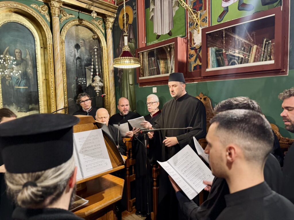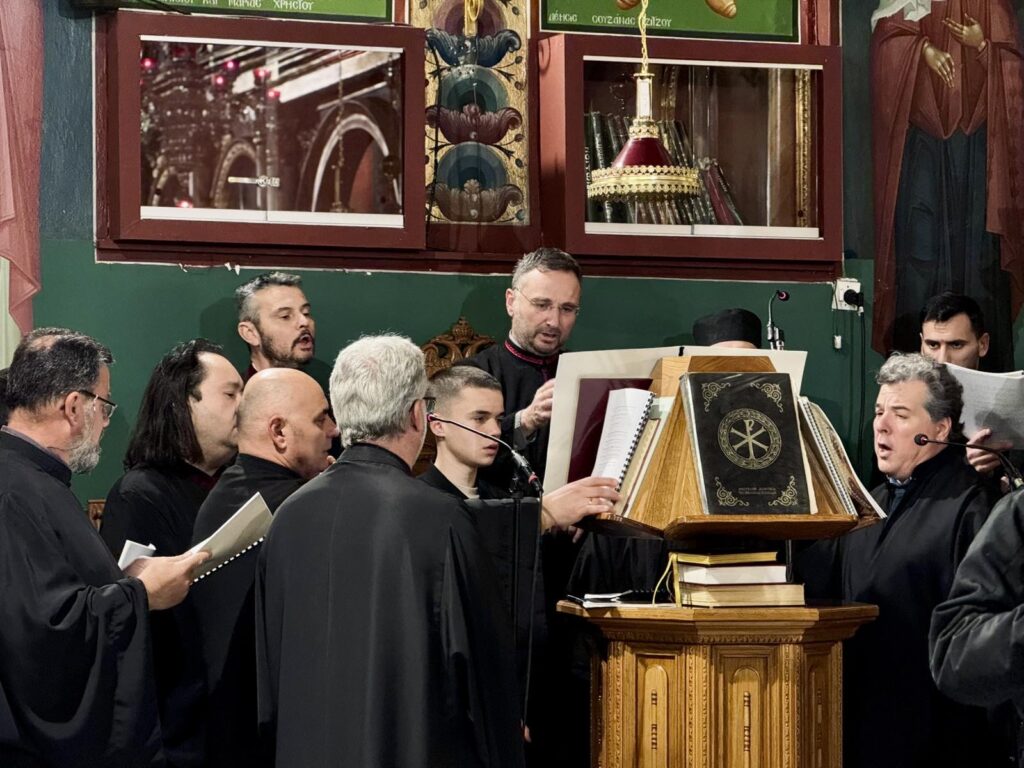 Οι μαθητές της Σχολής απέδωσαν με υψηλό επίπεδο ερμηνείας και ακρίβεια τους ύμνους της ακολουθίας, συμβάλλοντας καθοριστικά στην κατανυκτική ατμόσφαιρα και στην ανάδειξη της αυθεντικής βυζαντινής μουσικής παράδοσης.