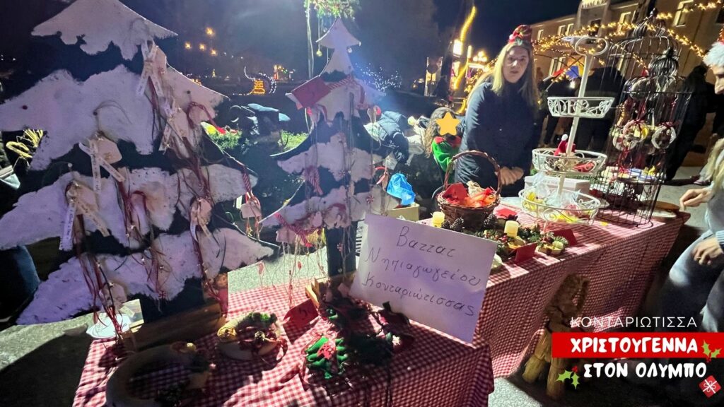 Ένα μεγάλο χριστουγεννιάτικο bazaar με δημιουργίες μελών των πολιτιστικών συλλόγων και συλλόγων γονέων και κηδεμόνων σχολείων της Δημοτικής Ενότητας Δίου φιλοξενήθηκε στο προαύλιο του Δημαρχείου Κονταριώτισσας, το Σάββατο 20 Δεκεμβρίου 2025. Η βραδιά, που άνοιξε με το άναμμα του χριστουγεννιάτικου δέντρου από τον Δήμαρχο, ήταν γεμάτη ζεστά και κρύα κεράσματα, ευγενική προσφορά των συλλόγων, παιχνίδι και πολύ μουσική.
