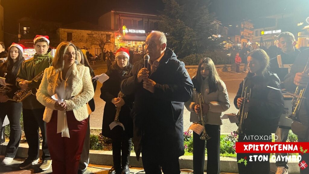 Υπό τους χριστουγεννιάτικους ήχους της Φιλαρμονικής Ορχήστρας Δίου-Ολύμπου «Οδυσσέας Σβάρνας» έγινε το άναμμα του χριστουγεννιάτικου δέντρου από τον Δήμαρχο, την Παρασκευή 12 Δεκεμβρίου 2025 στο Λιτόχωρο.