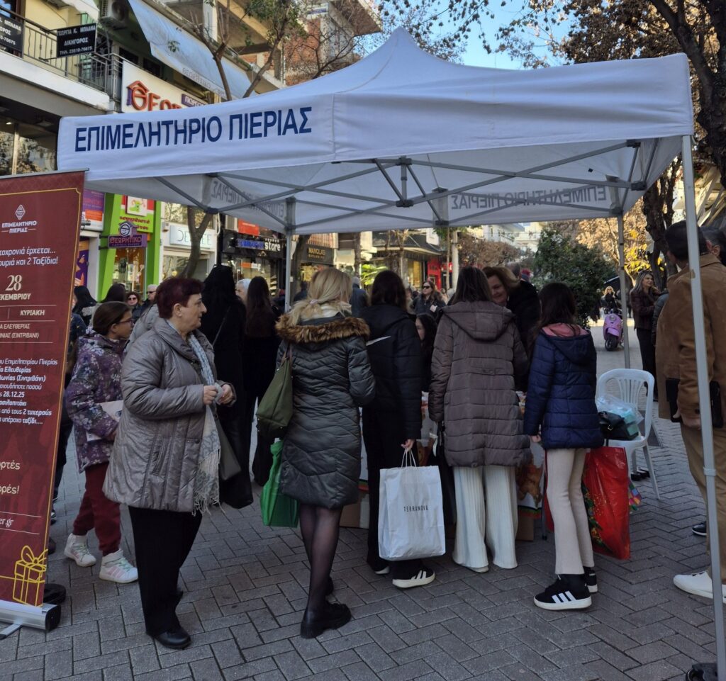 Με μεγάλη επιτυχία και ανταπόκριση πραγματοποιήθηκε την Κυριακή 28 Δεκεμβρίου 2025 η εορταστική δράση του Επιμελητηρίου Πιερίας στον Πεζόδρομο της Μ. Αλεξάνδρου.