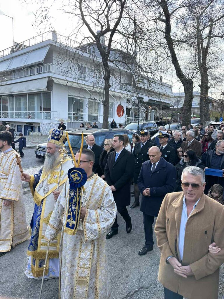 Στην τελετή Αγιασμού των υδάτων στον Πλαταμώνα χοροστάτησε και φέτος ο Σεβασμιώτατος Μητροπολίτης Κίτρους, Κατερίνης και Πλαταμώνος, κ.κ. Γεώργιος. Την Αρχιερατική Δοξολογία στον Ιερό Ναό Μεταμορφώσεως του Σωτήρος και στη συνέχεια τον Καθαγιασμό των υδάτων στο λιμάνι του Πλαταμώνα, παρακολούθησαν ο Δήμαρχος Δίου-Ολύμπου, Βαγγέλης Γερολιόλιος, οι βουλευτές Πιερίας, Σπύρος Κουλκουδίνας και Κομνηνός Δελβερούδης, η Αντιπεριφερειάρχης Πιερίας, Σοφία Μαυρίδου και πλήθος πιστών.