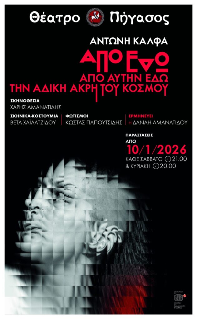 Παραστάσεις κάθε Σάββατο στις 9.οο μ.μ και Κυριακές στις 8.οο μ.μ, στη σκηνή του Θεάτρου ΠΗΓΑΣΟΣ, Αγίας Αικατερίνης 16.