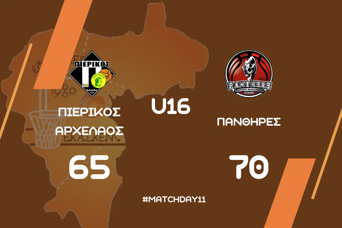 Ο Πιερικός Αρχέλαος ηττήθηκε στην παράταση με 65-70 από τους Πάνθηρες, στο Κλειστό Γυμναστήριο Σιδηροδρομικού Σταθμού Κατερίνης, σε αγώνα για την 11η αγωνιστική του α’ ομίλου της α’ φάσης του πρωταθλήματος παίδων της ΕΚΑΣΚΕΜ.