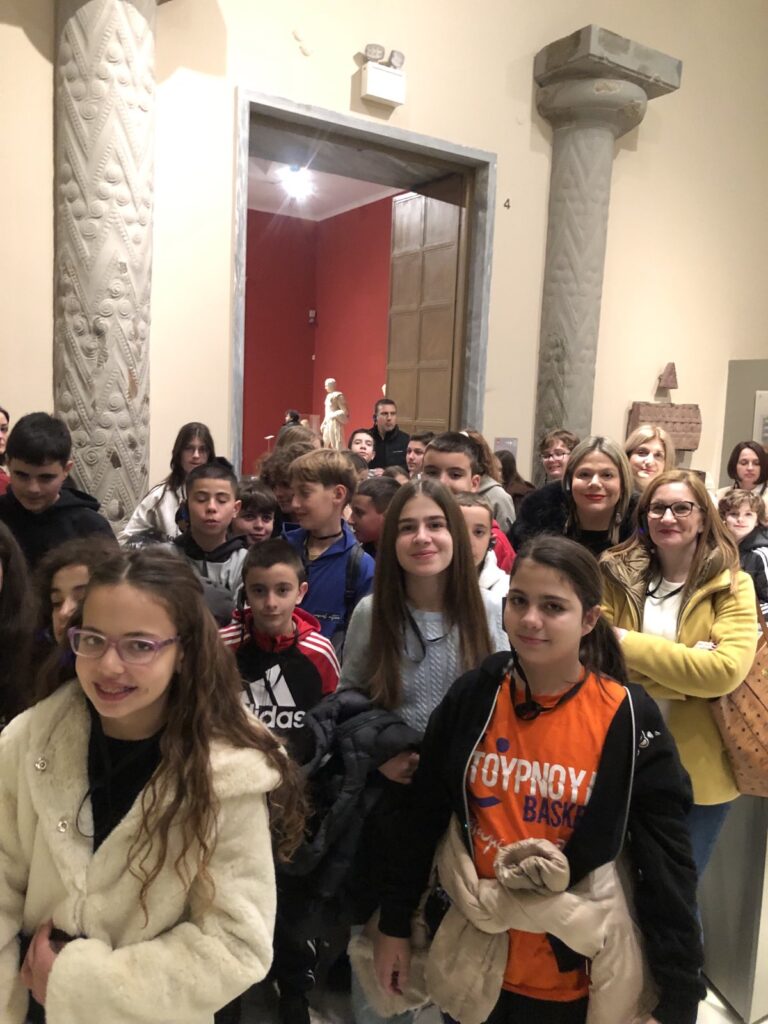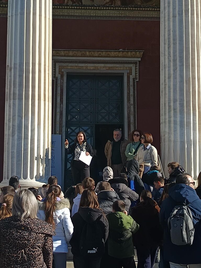 Το ταξίδι ξεκίνησε από το Εθνικό Αρχαιολογικό Μουσείο, στην οδό Πατησίων, δίπλα στο ιστορικό κτήριο του Πολυτεχνείου. Πρόκειται για το μεγαλύτερο μουσείο της Ελλάδας και ένα από τα σημαντικότερα στον κόσμο. Φιλοξενεί περισσότερα από 11.000 εκθέματα, από την Προϊστορική εποχή έως τα Ρωμαϊκά χρόνια. Ανάμεσα σε Μυκηναϊκά, Κυκλαδικά, Γεωμετρικά, Κλασικά και Ρωμαϊκά ευρήματα, οι μαθητές ένιωσαν τη συνέχεια του ελληνικού πολιτισμού μέσα στους αιώνες.