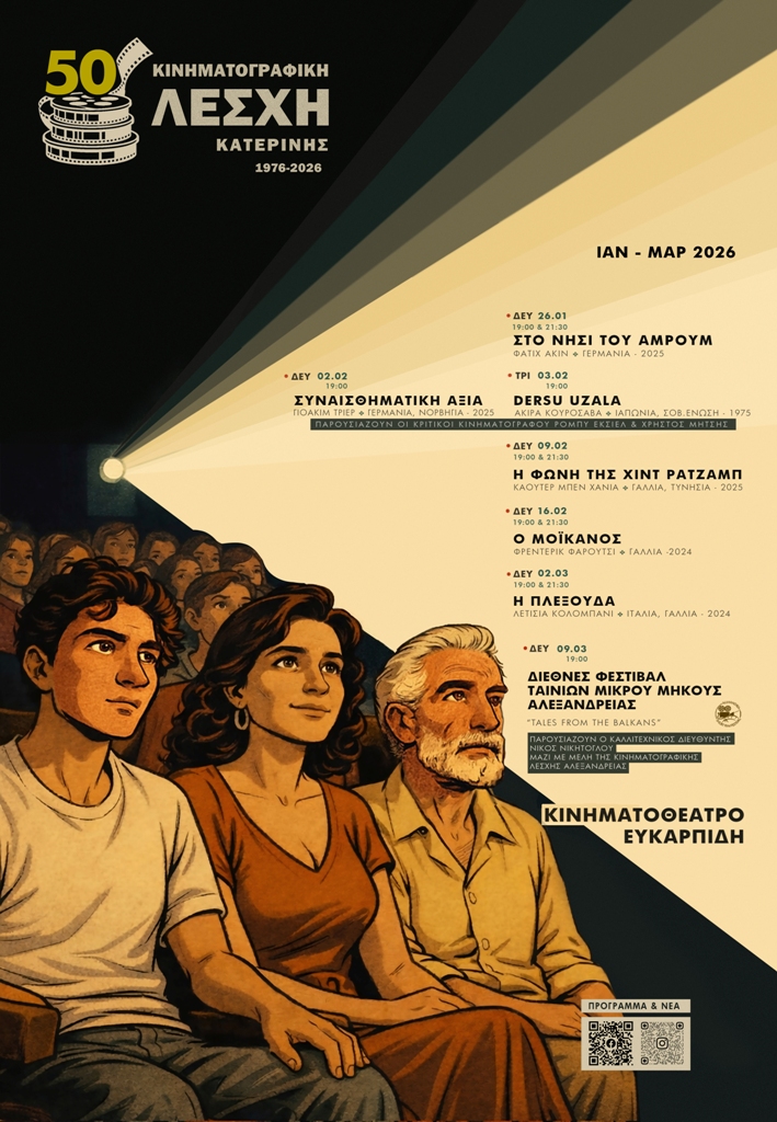 Η Κινηματογραφική Λέσχη Κατερίνης το 2026 γιορτάζει 50 χρόνια αδιάλειπτης παρουσίας και αγάπης για το σινεμά. Πενήντα χρόνια χειμερινών και θερινών προβολών, συναντήσεων, συζητήσεων, φιλοξενούμενων σκηνοθετών, ηθοποιών και ανθρώπων της έβδομης τέχνης. Πενήντα χρόνια όπου το παγκόσμιο σινεμά βρήκε σταθερά τη θέση του στην πόλη μας!