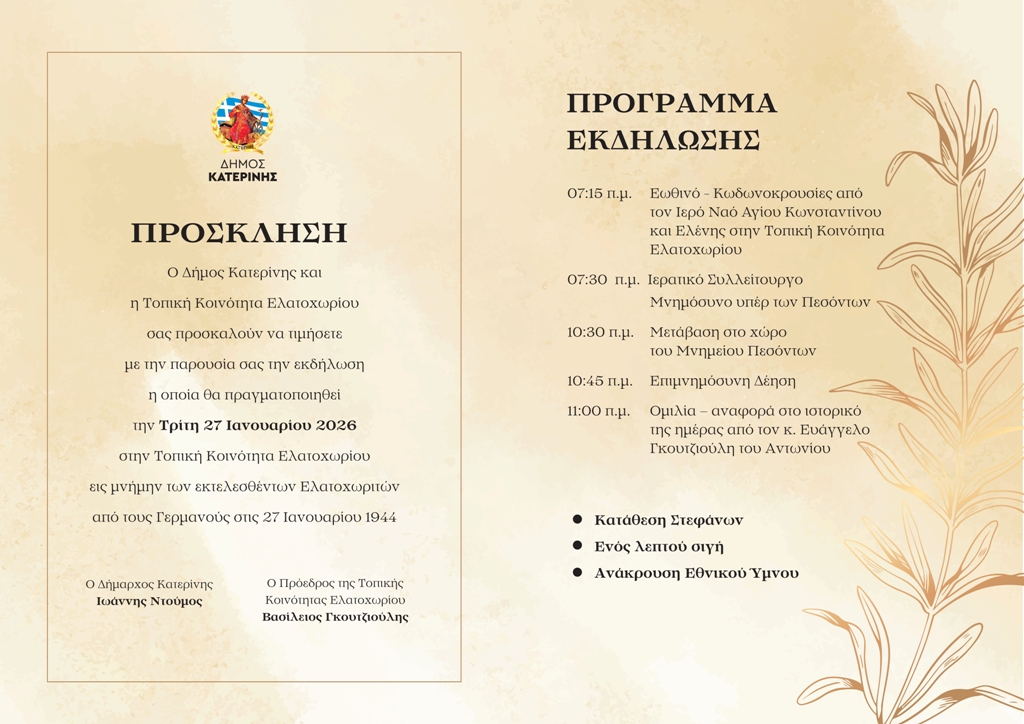 Δήμος Κατερίνης: Εκδήλωση Μνήμης & Τιμής θυμάτων κατοχής στο Ελατοχώρι Κοινωνία 26 Ιανουαρίου 202626 Ιανουαρίου 2026Pieria Social prosklisi elatoxori.cdr
