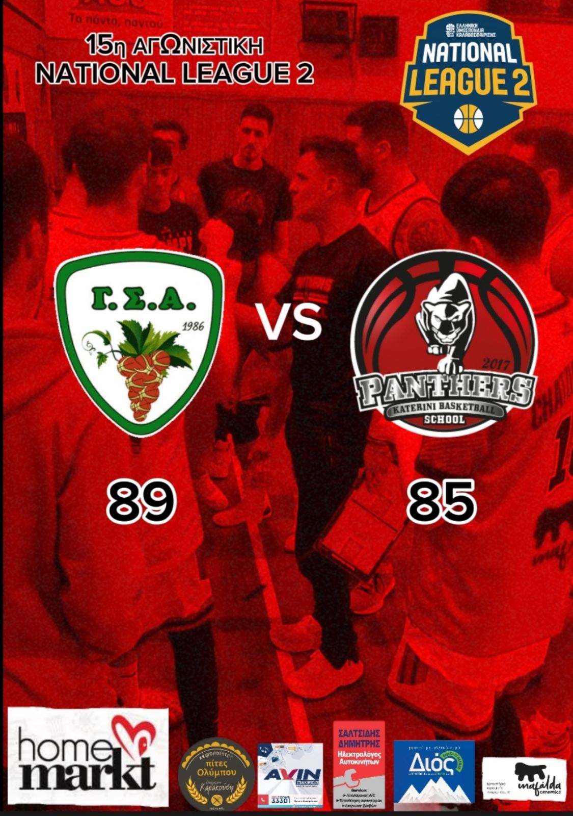 Οι Πάνθηρες Κατερίνης έδωσαν μια πραγματική μάχη στην έδρα του Αμπελώνα για την 15η αγωνιστική της National League 2, γνωρίζοντας τελικά την ήττα με 89-85. Παρά το αποτέλεσμα, η ομάδα του Δαμιανού Χρυσίδη απέδειξε για ακόμα μια φορά το μαχητικό της πνεύμα. Οι παίκτες της Κατερίνης αρνήθηκαν να παραδώσουν τα όπλα, επιστρέφοντας τρεις φορές στο παιχνίδι από διψήφιες διαφορές.