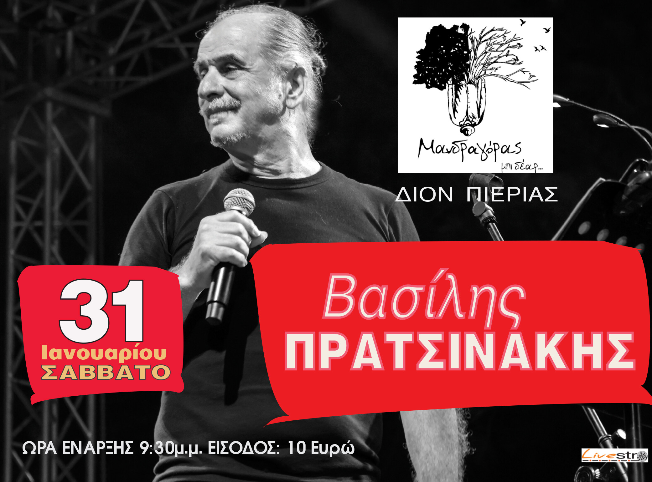 Ο ΒΑΣΙΛΗΣ ΠΡΑΤΣΙΝΑΚΗΣ μέσα από γνωστές μελωδίες, ήχους και τραγούδια που σιγοτραγουδήσαμε και μεγαλώσαμε μαζί τους, σ ένα πρόγραμμα με έντεχνα, λαϊκα αλλά Κρητικά τραγούδια πρόγραμμα που συνεχίζει και φέτος αυτό που ξεκίνησε πριν 30 χρόνια σε μουσικές σκηνές της πόλης της Θεσσαλονίκης (‘’ΜΥΣΤΙΚΟ’’, ‘’ΠΑΡΑΣΚΗΝΙΟ’’, ‘’ΒΑΡΔΙΑ’’, ‘’ΜΑΥΡΗ ΤΡΥΠΑ’’) με την αγάπη και το μεράκι στο τραγούδι και στη μουσική.