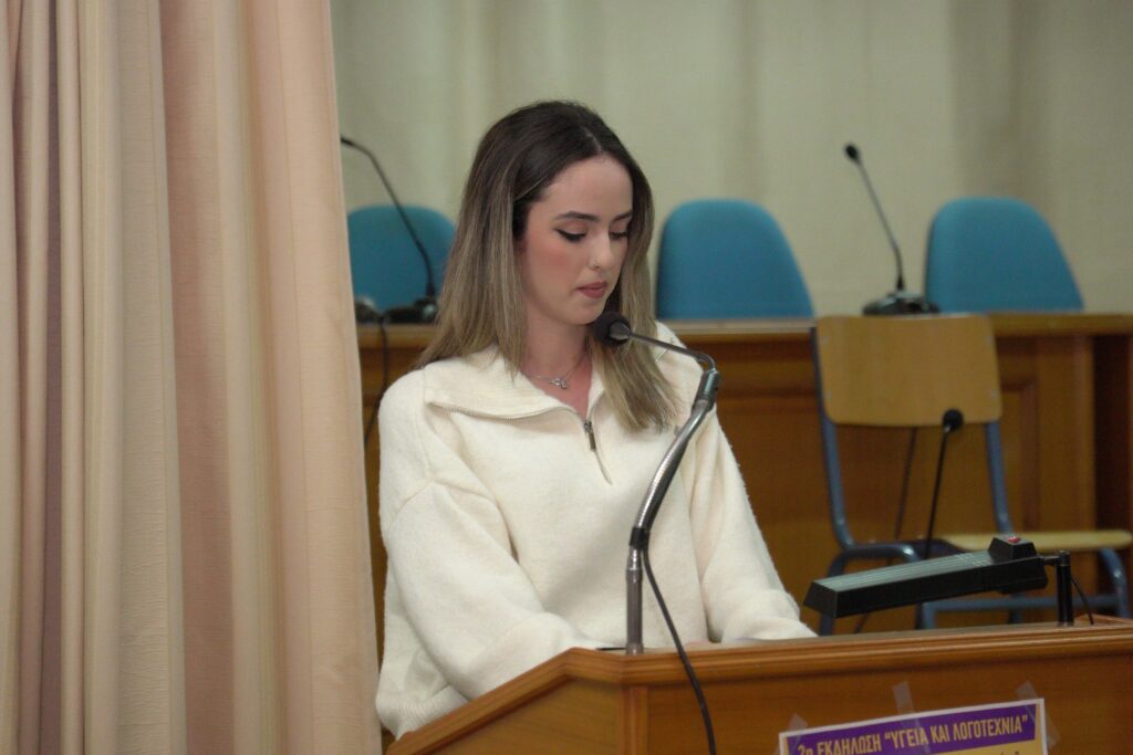 Η Διευθύντρια του Σχολείου Δεύτερης Ευκαιρίας Κατερίνης, Περιφερειακή Σύμβουλος Πιερίας, δικηγόρος, κ. Χρυσαυγή Δριστά παίρνοντας τον λόγο, αναφέρθηκε κατ΄αρχήν στην προκήρυξη τριήμερου πένθους από την Περιφέρεια Κεντρικής Μακεδονίας για τους επτά οπαδούς του ΠΑΟΚ που έχασαν τη ζωή τους και τηρήθηκε ενός λεπτό σιγή εις μνήμην τους. Αναφερόμενη στο θέμα της εκδήλωσης υπογράμμισε ότι «Ο Καζαντζάκης είπε, η πένα μου είναι η προέκταση της ψυχής μου· γράφω για να μη με πνίξουν τα βάθη της». Διαβάζουμε, λοιπόν για να φωτίσουμε τα δικά μας βάθη. Στο ΣΔΕ γνωρίζουμε καλά ότι πίσω από κάθε μαθητή και κάθε μαθήτρια υπάρχει μια ιστορία. Ένα παρελθόν, ένας αγώνας, μια ανάγκη για αλλαγή. Η μάθηση στην ενήλικη ζωή δεν είναι διαδικασία. Είναι υπέρβαση. Συναντούμε συχνά κουρασμένες ψυχές: ανθρώπους που παλεύουν με άγχη, ευθύνες, τραύματα, φόβους, απώλειες. Ανθρώπους που, όταν έρχονται στο σχολείο, φέρνουν μαζί τους ολόκληρο το βιωματικό τους φορτίο. Και όμως, μέσα σε όλα αυτά, επιλέγουν να προχωρούν. Επιλέγουν να πιστέψουν ότι μπορούν να αλλάξουν τη ζωή τους. Στην καθημερινή εκπαιδευτική πράξη βλέπουμε συχνά ότι ένα ποίημα/ένα απόσπασμα από ένα λογοτεχνικό ή θεατρικό έργο μπορεί να ξεκλειδώσει μνήμες, να ανοίξει συζητήσεις, να φέρει κοντά ανθρώπους. Αυτό είναι θεραπευτικό. Αυτό είναι ψυχική υγεία στην πράξη και στην τάξη».