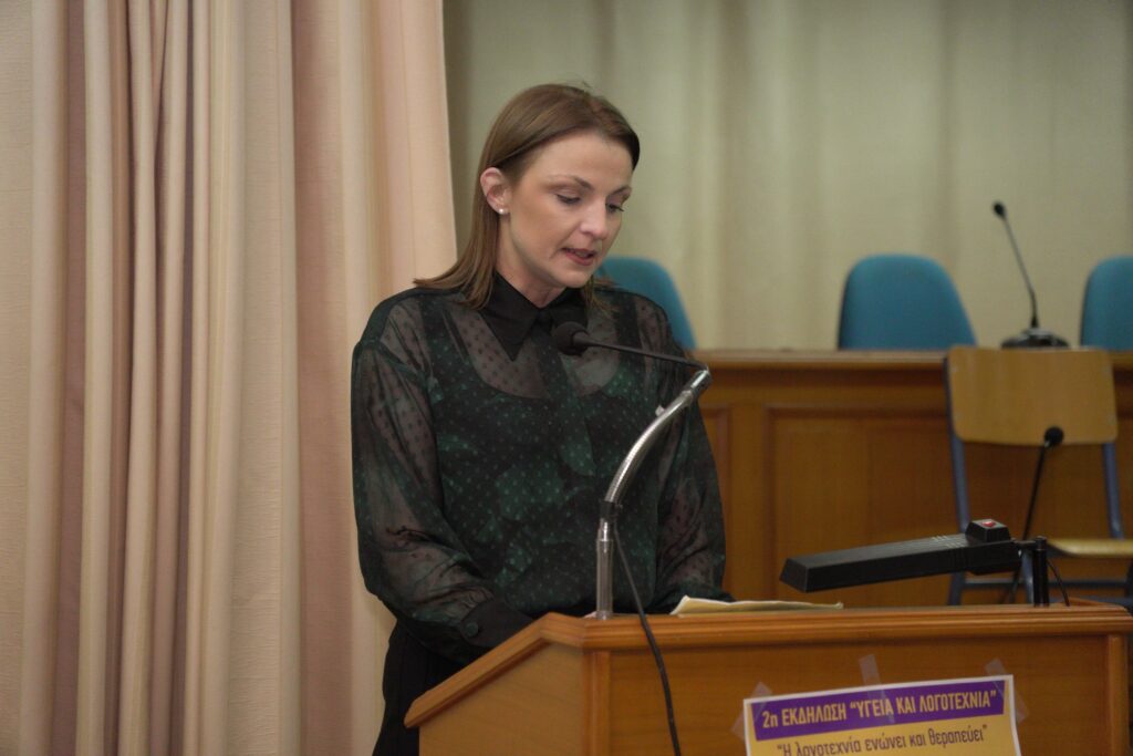Η Διευθύντρια της ΣΑΕΚ κ Μαρβάκη Αικατερίνη, στον εναρκτήριο χαιρετισμό της υπογράμμισε ότι «Στόχος μας είναι η εξωστρέφεια με δράσεις που συμβάλλουν στον κοινωνικό ρόλο της ΣΑΕΚ αλλά και την πολυεπίπεδη συμμετοχικότητα. Φέτος μαζί με το ΣΔΕ Κατερίνης, συνδιοργανώσαμε την εκδήλωση αποδεικνύοντας ότι «η λογοτεχνία ενώνει» και όσον αφορά το θέμα μας, «θεραπεύει την ψυχή». Έχουμε υποχρέωση ως φορείς υγείας, ως ΣΑΕΚ, αλλά και ως πολίτες να συμβάλουμε ενεργά στη δημιουργία μιας κοινωνίας που αναγνωρίζει, στηρίζει και προστατεύει την ψυχική ισορροπία όλων, αξιοποιώντας ακόμη και τη λογοτεχνία ως μέσο κατανόησης και ενσυναίσθησης. Η ποίηση επίσης σε αυτή την τραγική συγκυρία στη σκιά δύο τραγωδιών, μας ενώνει στον πόνο και μας θυμίζει πως η φροντίδα της ψυχής είναι κοινή ευθύνη. Η λογοτεχνία αγγίζει την ψυχή, την βοηθά να βλέπει και να σκέφτεται διαφορετικά. Η ασθένεια της ψυχής, ο πόνος, μπορεί να ακουμπήσει στη λογοτεχνία».