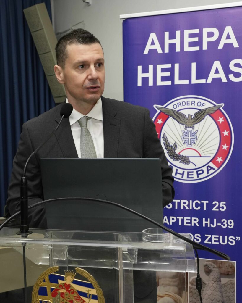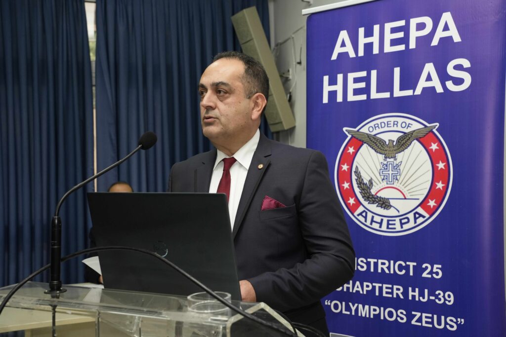Στην προσφώνησή του επί της υποδοχής των ομιλητών αλλά και των προσκεκλημένων, ο πρόεδρος του τμήματος «Ολύμπιος Ζευς» Κατερίνης και Αντικυβερνήτης της ΑΧΕΠΑ ΕΛΛΑΣ Παναγιώτης Ταρενίδης – MD, PhD- Ειδικός Καρδιολόγος, αφού ευχαρίστησε για την παρουσία όλων παρά τις δύσκολες καιρικές συνθήκες, αναφέρθηκε στην ιστορική διαδρομή της Ομογενειακής Οργάνωσης που ιδρύθηκε το έτος 1922, καθώς και στα αντίστοιχα της ελλαδικής περιφέρειας (το 2000) και της Κατερίνης το οποίο δημιουργήθηκε πριν από επτά χρόνια.