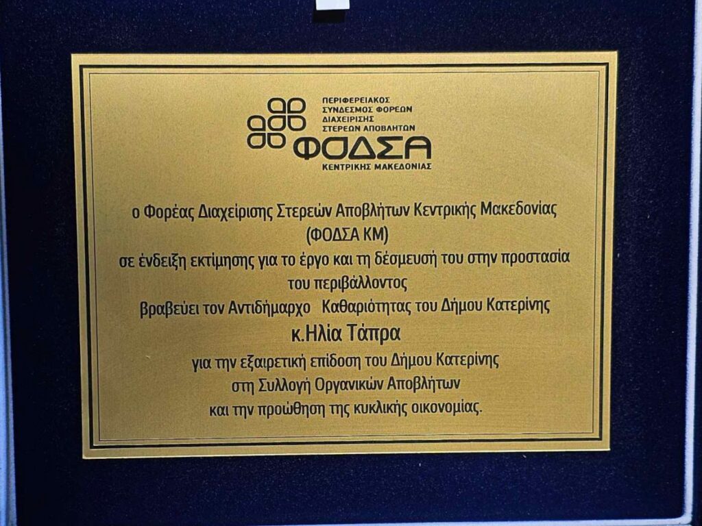 Όπως σημειώνει ο κος Τάπρας: «Το 2024 ο Δήμος Κατερίνης ήταν ο πρώτος δήμος στην ορθή διαχείριση οργανικών αποβλήτων στην Κεντρική Μακεδονία και μάλιστα βραβεύτηκε από τον Φορέα Διαχείρισης Στερεών Αποβλήτων Κεντρικής Μακεδονίας, για τις εξαιρετικές του επιδόσεις στον τομέα αυτό. Το 2025 καταφέραμε να πάμε ακόμη καλύτερα, διπλασιάζοντας τη συλλογή των οργανικών. Συγκεκριμένα, το 2024 συλλέξαμε 460 τόνους και φέτος ξεπεράσαμε τους 900, φτάνοντας συνολικά τους 1.500 τόνους μέσα σε δύο χρόνια. Ξεκινήσαμε ουσιαστικά από το μηδέν στη δική μας αντιδημαρχία και με την προτροπή και εμπιστοσύνη του Δημάρχου μας, με τη συνεργασία των δημοτών και των επιχειρήσεων, χτίσαμε βήμα – βήμα μια νέα νοοτροπία γύρω από τον καφέ κάδο. Εκεί που είχαμε έναν ή δύο κάδους, σήμερα σε πολλές επιχειρήσεις φτάσαμε να τοποθετούμε τρεις και τέσσερις, αποδεικνύοντας ότι, όταν ο κόσμος ενημερωθεί σωστά, συμμετέχει ενεργά».