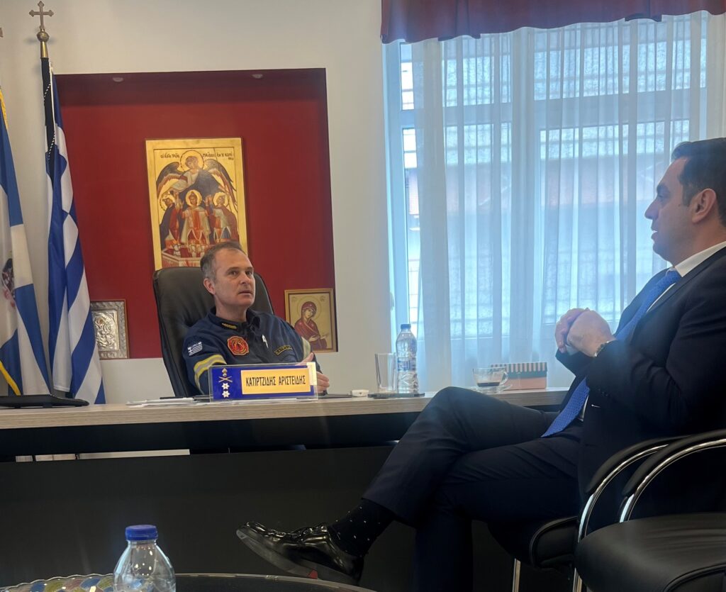 Συνάντηση με τον Συντονιστή Πυροσβεστικών Υπηρεσιών Κεντρικής, Ανατολικής Μακεδονίας και Θράκης, Υποστράτηγο του Πυροσβεστικού Σώματος, κ. Αριστείδη Κατιρτζίδη, πραγματοποίησε ο Βουλευτής Πιερίας Σπύρος Κουλκουδίνας, με αντικείμενο την επιχειρησιακή ετοιμότητα στον Όλυμπο και τη συνολική ενίσχυση των πυροσβεστικών υπηρεσιών στην Πιερία.