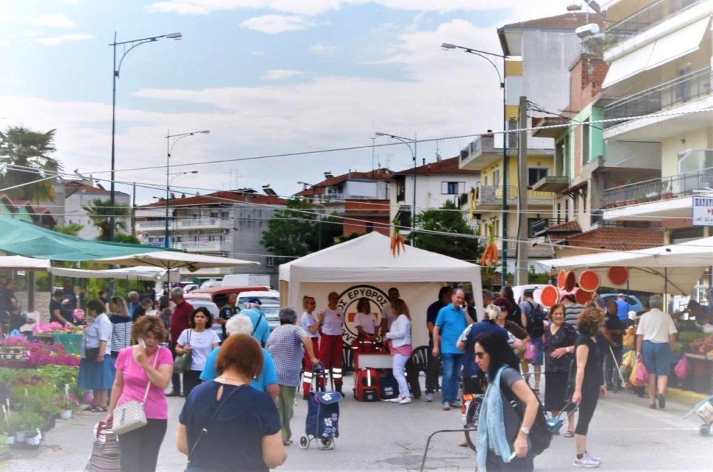 Με στόχο τη διασφάλιση της δημόσιας υγείας, παρέχουν πολύτιμες υπηρεσίες υγειονομικής κάλυψης και ενημέρωσης των δημοτών για τα ατομικά μέτρα προστασίας στις λαϊκές αγορές της Κατερίνης. Ο λόγος για τους εθελοντές και εθελόντριες του παραρτήματος Ελληνικού Ερυθρού Σταυρού Κατερίνης, τις ευχαριστίες του προς τους οποίους εξέφρασε ο Δήμαρχος Κατερίνης, Κώστας Κουκοδήμος, που συνοδευόμενος από τον αρμόδιο Αντιδήμαρχο, Γιώργο Τσιαλό, επισκέφθηκε το πρωί του Σαββάτου 13/6, το περίπτερό τους στη λαϊκή αγορά.