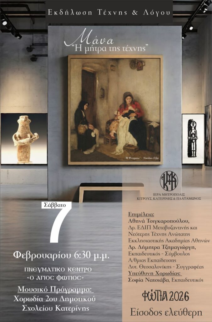Συνεχίζονται τα “Φώτια 2026” το Σάββατο 7/2 με την Εκδήλωση Λόγου και Τέχνης “Μάνα, η μήτρα της Τέχνης” Κοινωνία Πολιτισμός 5 Φεβρουαρίου 20265 Φεβρουαρίου 2026Pieria Social