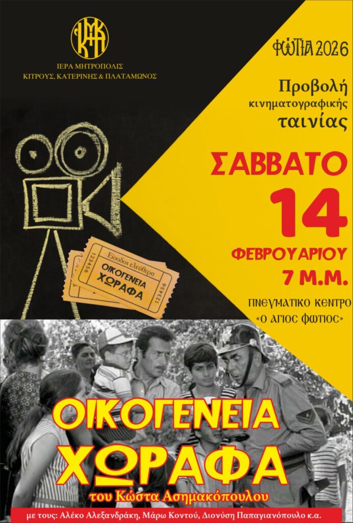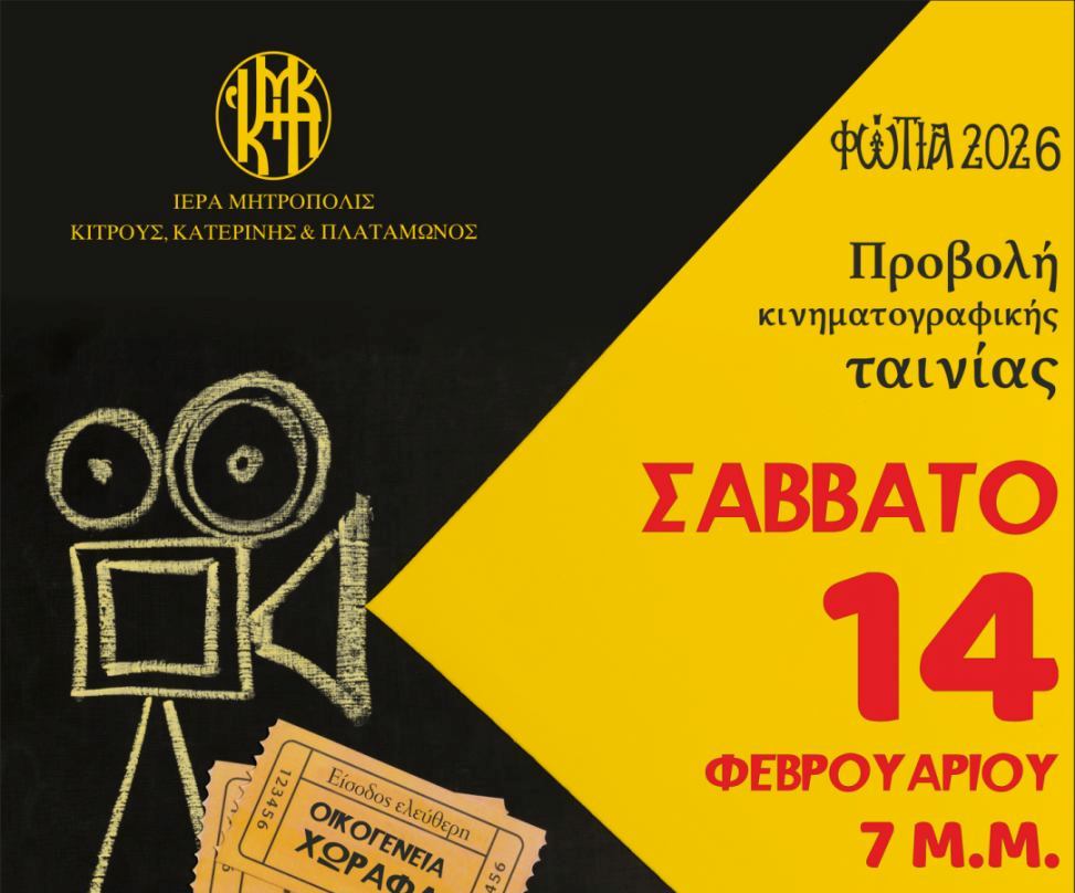 Προβολή κινηματογραφικής ταινίας το Σάββατο 14 Φεβρουαρίου, στα “Φώτια 2026” Πολιτισμός 12 Φεβρουαρίου 202612 Φεβρουαρίου 2026Pieria Social