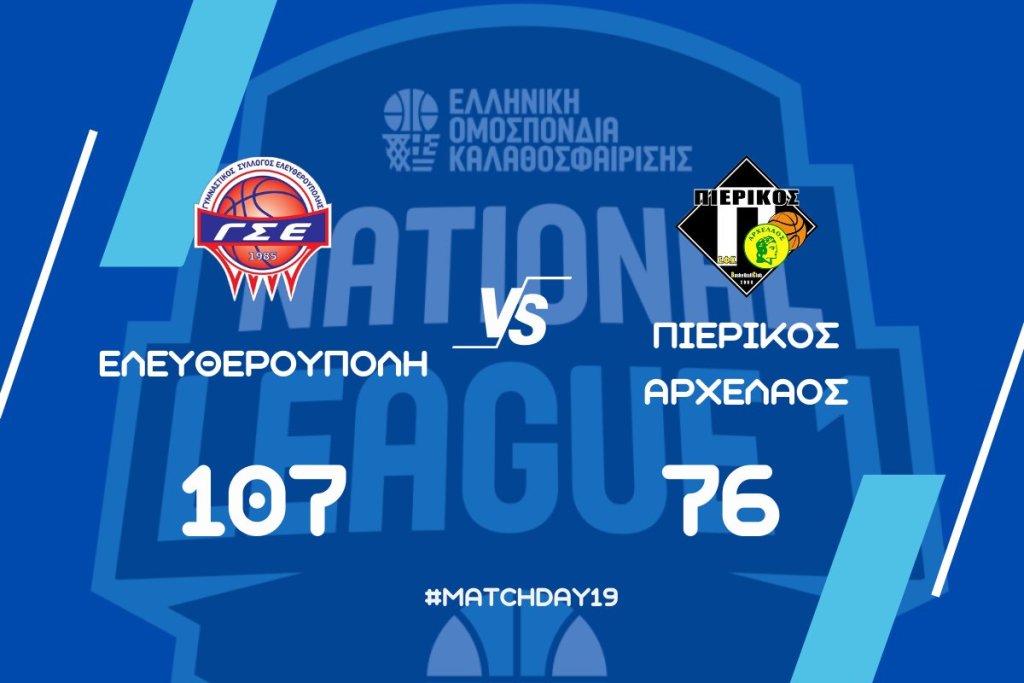 Ο Πιερικός Αρχέλαος ηττήθηκε με 107-76 από την Ελευθερούπολη, στο Δημοτικό Αθλητικό Κέντρο Ελευθερούπολης, σε αγώνα για τη 19η αγωνιστική του 3ου ομίλου της National League 1.