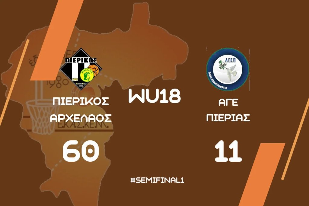 Ο Πιερικός Αρχέλαος επικράτησε με 60-11 της ΑΓΕ Πιερίας, στο Κλειστό Γυμναστήριο Σιδηροδρομικού Σταθμού Κατερίνης, σε αγώνα για την 1η αγωνιστική της ημιτελικής φάσης του πρωταθλήματος νεανίδων της ΕΚΑΣΚΕΜ.