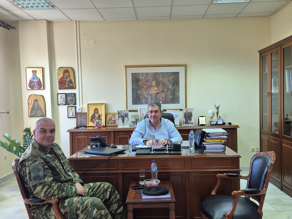 Εθιμοτυπική επίσκεψη πραγματοποίησε σήμερα Τετάρτη 18 Φεβρουαρίου, στον Πρόεδρο του Επιμελητηρίου Πιερίας, Κωνσταντίνο Πίτσια, ο νέος Διοικητής της 24ης Τεθωρακισμένης Ταξιαρχίας Λιτοχώρου, Δήμος Κωτούλας, με αφορμή την πρόσφατη ανάληψη των καθηκόντων του.