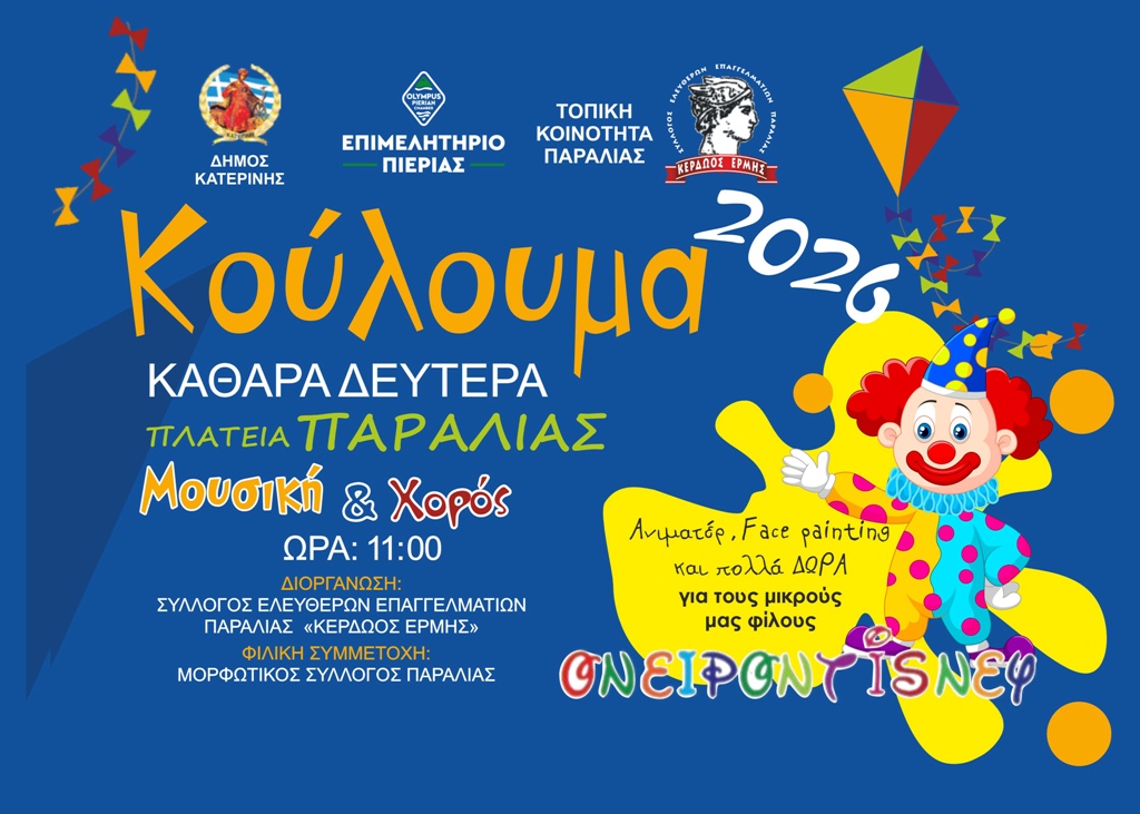 Γιορτάζουμε παραδοσιακά τα ΚΟΥΛΟΥΜΑ με λαγάνα, σαρακοστιανά εδέσματα και μουσική δίπλα στο κύμα (Παραλία Κατερίνης, Παραλία Κορινού) και σε κάθε γωνιά του δήμου μας!