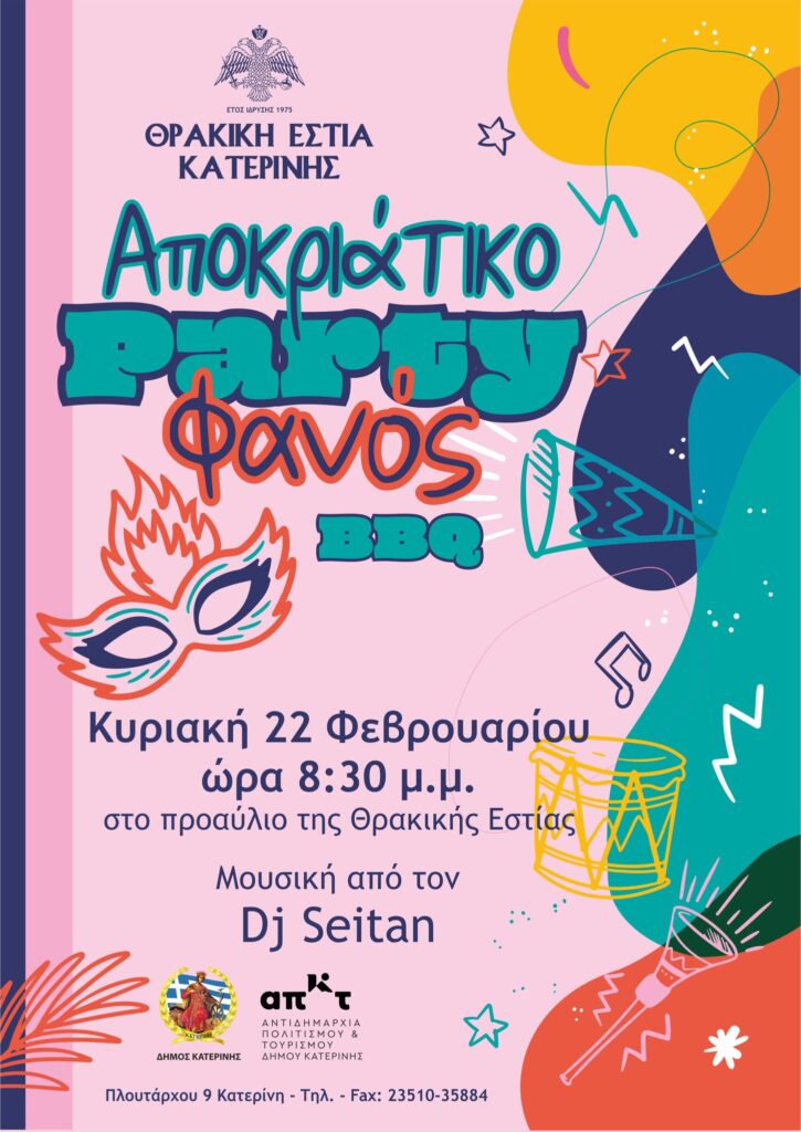20:30 ΘΡΑΚΙΚΗ ΕΣΤΙΑ ΚΑΤΕΡΙΝΗΣ (στο χώρο του συλλόγου)