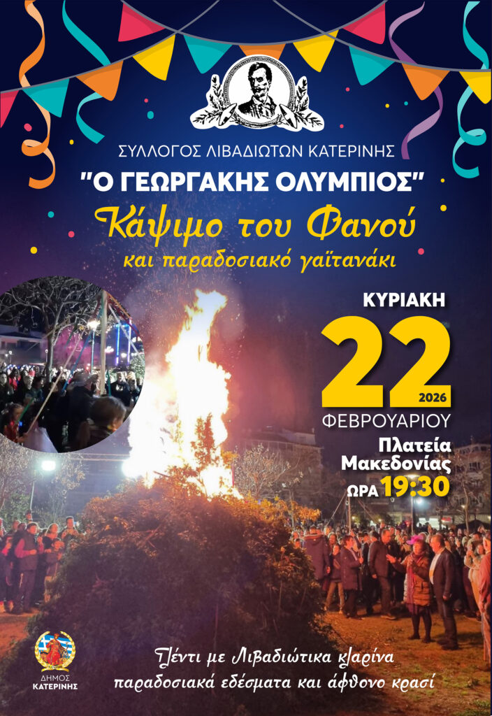 19:30 ΣΥΛΛΟΓΟΣ ΛΙΒΑΔΙΩΤΩΝ ΚΑΤΕΡΙΝΗΣ “Γ. Ολύμπιος” (Πλατεία Μακεδονίας)