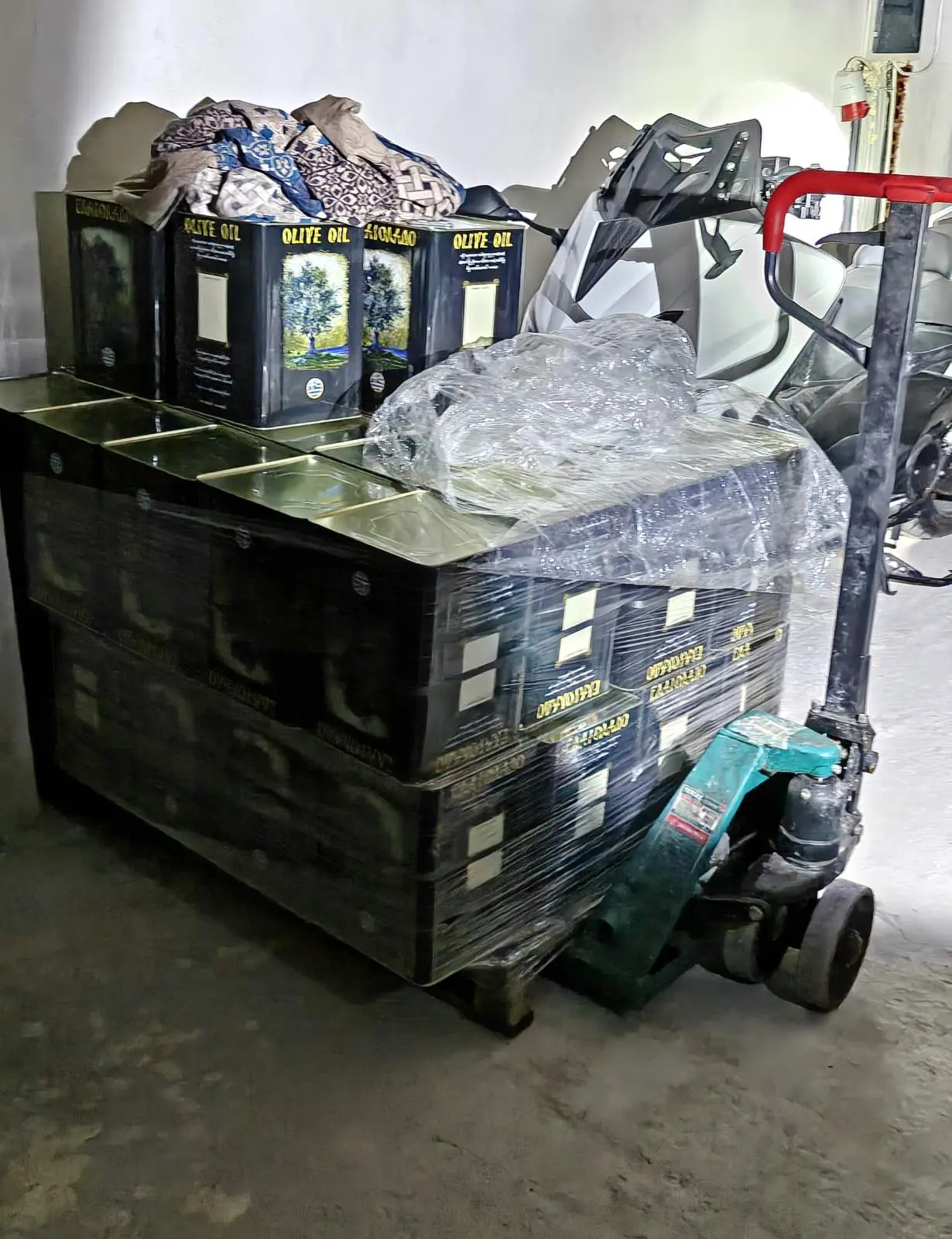 Κατασχέθηκαν μεταξύ άλλων, 2.125 λίτρα ελαίων εκ των οποίων τα 600 λίτρα ήταν τυποποιημένα σε περιέκτες που ανέγραφαν «Εξαιρετικό Παρθένο Ελαιόλαδο», -44- κενοί μεταλλικοί περιέκτες ελαίων, πλήθος χαρτοκιβωτίων, πλήθος πωμάτων καθώς και παλετοφόρο