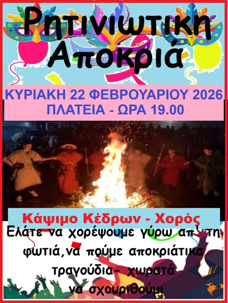 Το βράδυ της Κυριακής 23 Φεβρουαρίου 2026, ώρα 19.00 στην κεντρική πλατεία
