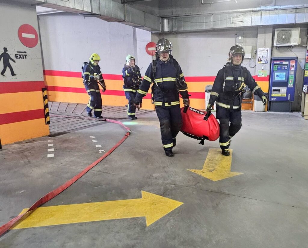 Συγκεκριμένα, το σενάριο της άσκησης επικεντρώθηκε στη διαχείριση κρίσιμου συμβάντος που προκλήθηκε από την εκδήλωση πυρκαγιάς στη διάρκεια φόρτισης ηλεκτρικού αυτοκινήτου και περιλάμβανε, μεταξύ άλλων, απεγκλωβισμό πολιτών που προσπαθούσαν να διαφύγουν, καθώς και διακομιδή τραυματία με ασθενοφόρο, έλεγχο συστημάτων πυρανίχνευσης, εξαερισμού και εκκένωση.