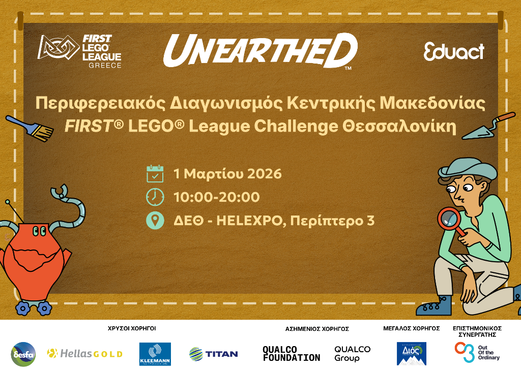 Την Κυριακή 1 Μαρτίου 2026, θα πραγματοποιηθεί ο Περιφερειακός Διαγωνισμός FIRST® LEGO® League Θεσσαλονίκη, φιλοξενώντας πάνω από 500 παιδιά της ευρύτερης περιοχής. Ο Διαγωνισμός θα φιλοξενηθεί στην Διεθνή Έκθεση Θεσσαλονίκης ΔΕΘ – HELEXPO, Περίπτερο 3 τις ώρες 10:00 – 20:00 και η είσοδος είναι ανοιχτή για το κοινό.