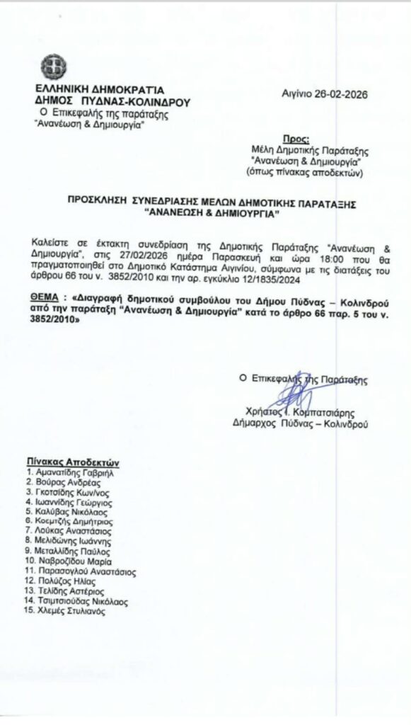 Σε απάντηση της πρόσκλησής του κ.Κομπατσιάρη Χρήστου, που έλαβα στο προσωπικό μου e-mail, ως επικεφαλή της παράταξης «Ανανέωση και Δημιουργία», και κατέχοντας τη θέση του Δημοτικού Συμβούλου στην συγκεκριμένη, θα ήθελα να σας γνωστοποιήσω ότι δεν αποδέχομαι τη συγκεκριμένη πρόσκληση.