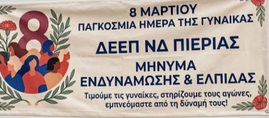 Στη Δ.Ε.Ε.Π. Ν.Δ. Πιερίας, εργαζόμαστε καθημερινά για μια κοινωνία όπου κάθε γυναίκα θα μπορεί να ονειρεύεται, να δημιουργεί και να ηγείται χωρίς εμπόδια.