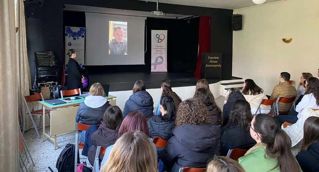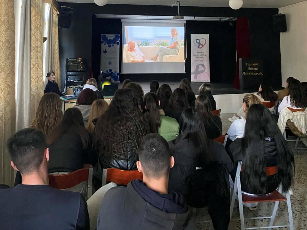 Στο πλαίσιο του εκπαιδευτικού προγράμματος «Δράσεις Ενεργού Πολίτη», ο Σύλλογος Καρκινοπαθών Πιερίας πραγματοποίησε μια πολυδιάστατη ενημερωτική επίσκεψη στους μαθητές και τις μαθήτριες της Γ’ τάξης του Γενικού Λυκείου Λεπτοκαρυάς την Παρασκευή 6 Μαρτίου 2026. Με κεντρικό σύνθημα ‘Η Γνώση είναι Δύναμη’, η δράση περιελάμβανε δύο διακριτές ενότητες, με στόχο την ευαισθητοποίηση της νέας γενιάς σε θέματα υγείας και κοινωνικής προσφοράς.