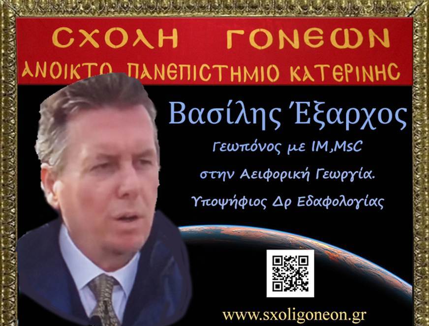 Ο κ. Βασίλης Έξαρχος είναι Γεωπόνος – Επιχειρηματίας με Μεταπτυχιακό στην Αειφορική Γεωργία και Υποψήφιος Διδάκτωρ Εδαφολογίας.