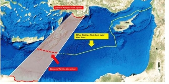 Χάρτης 3: Η χωροθετική απεικόνιση του ‘‘τουρκολιβυκού μνημονίου’’.