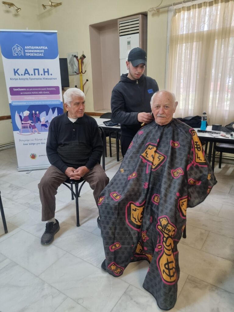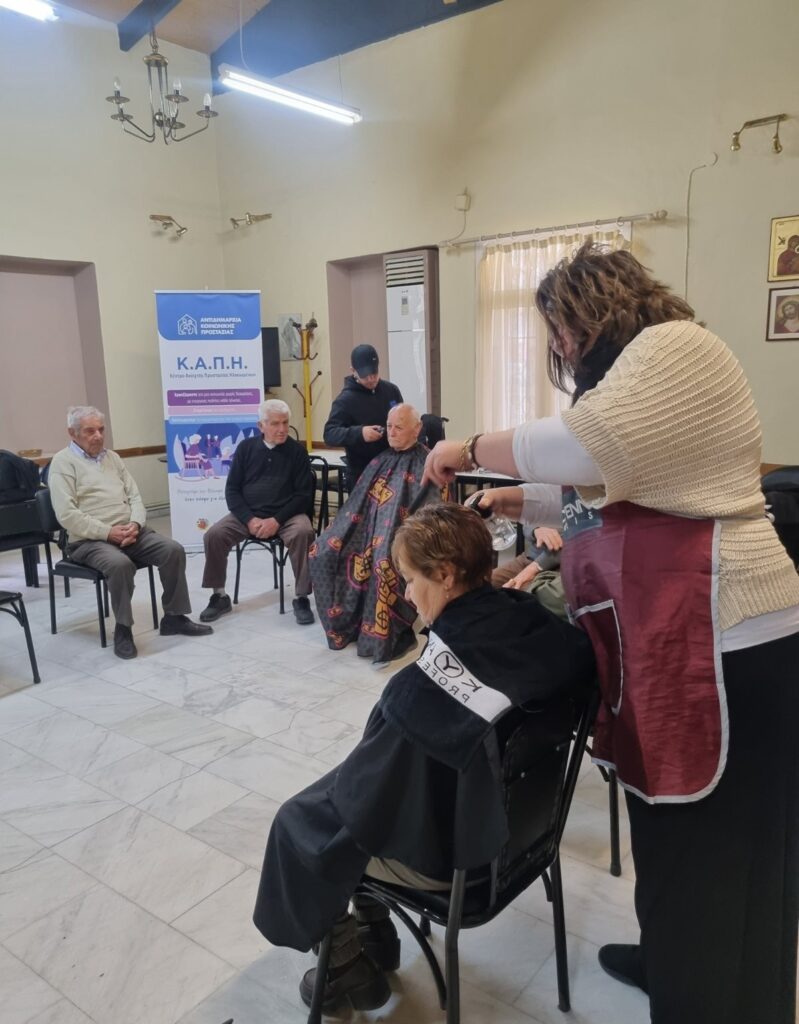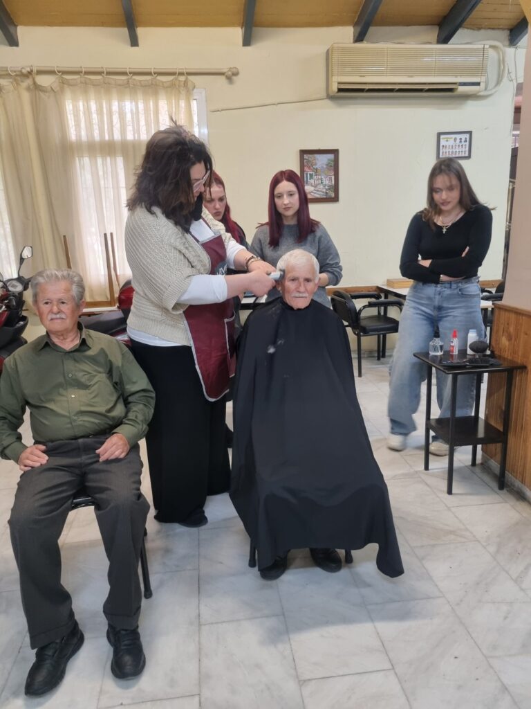 Στο πλαίσιο πρακτικής άσκησης και με διάθεση κοινωνικής προσφοράς, το τμήμα Κομμωτικής Τέχνης, συνοδευόμενο από την εκπαιδεύτριά του Εύη Ζάχου, επισκέφθηκε το ΚΑΠΗ και πρόσφερε δωρεάν υπηρεσίες κουρέματος και περιποίησης στα μέλη του.