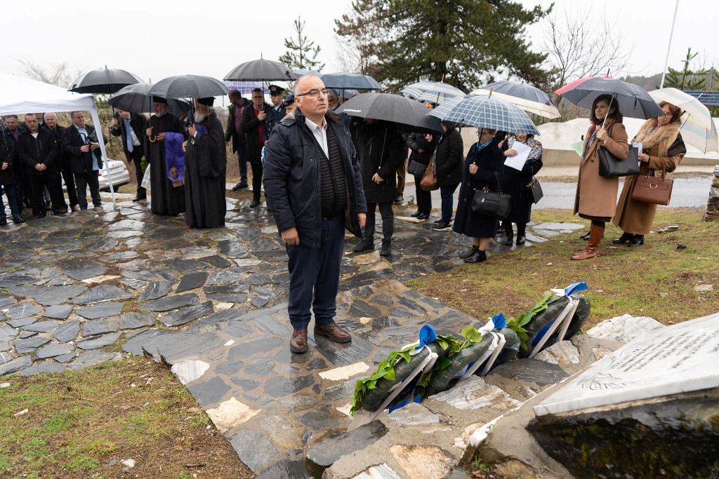 Στη συνέχεια, με φόντο τον Πύργο των Λαζαίων, τελέστηκε επιμνημόσυνη δέηση ενώ στεφάνι κατέθεσαν ο Δήμαρχος Κατερίνης, Ιωάννης Ντούμος, ο Βουλευτής Πιερίας, Σπύρος Κουλκουδίνας (ως εκπρόσωπος της Βουλής των Ελλήνων), η σύμβουλος της Περιφερειακής Ενότητας Πιερίας, Άννα Τζήκα, ο Πρόεδρος της Τοπικής Κοινότητας Μηλιάς, Γεώργιος Παπατόλιος, εκπρόσωποι της 24ης Τεθωρακισμένης Ταξιαρχίας Λιτοχώρου, της Διεύθυνσης Αστυνομίας Πιερίας, των Πυροσβεστικών υπηρεσιών Ν. Πιερίας, απογόνων της οικογένειας των Λαζαίων (αντιδήμαρχος – Χρήστος Λάζος). Από τον Πολιτιστικό Σύλλογο Κάτω Μηλιάς, «ΟΙ ΛΑΖΑΙΟΙ» (πρόεδρος – Γεωργία Αγγελάκη), από τον Εκπολιτιστικό – Εξωραϊστικό Σύλλογο Άνω Μηλιάς «Η Αγία Παρασκευή» (πρόεδρος – Ιωάννης Πούλιος) από τον Πολιτιστικό Σύλλογο Μεσαίας Μηλιάς, «ΑΪ ΓΙΩΡΓΗΣ» (Αθανάσιος Ζάχος – Πρόεδρος), εκπρόσωπος πολιτιστικού συλλόγου Ρυακίων «Διαμαντής Νικολάου «Ο Ολύμπιος» κ.ά.