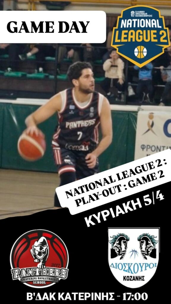 Την Κυριακή 5/4, στις 17:00, στο Β’ ΔΑΚ Κατερίνης “Θ. Διαμαντόπουλος”, οι Πάνθηρες δίνουν τον πιο κρίσιμο αγώνα της σεζόν απέναντι στους Διόσκουρους Κοζάνης.
