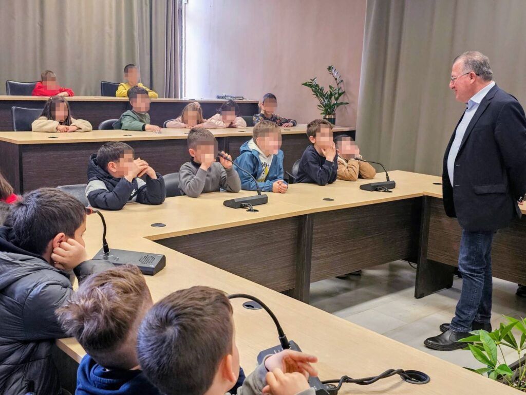 Τα παιδιά που συνοδεύονταν από τις δασκάλες τους, επισκέφτηκαν το Δημαρχείο, διατύπωσαν αιτήματα που αφορούν το σχολικό περιβάλλον και τις υποδομές του ενώ εξέφρασαν και την αγωνία τους για τους πολέμους στον πλανήτη.