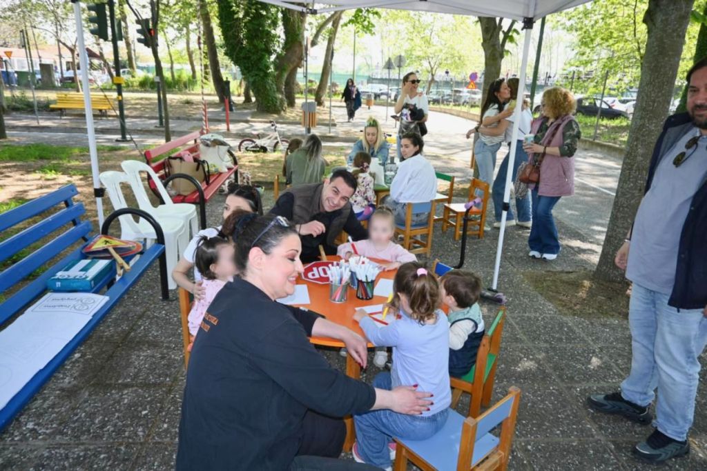 Από την πλευρά τους, στελέχη της Δημοτικής Αστυνομίας και της Τροχαίας Κατερίνης εξηγούσαν στα παιδιά κάποιους απλούς κανόνες οδικής συμπεριφοράς για την ασφαλή κίνηση των πεζών ενώ το όλο πρόγραμμα εμπλουτίστηκε με ζωγραφική και face painting γύρω από την κυκλοφοριακή αγωγή.