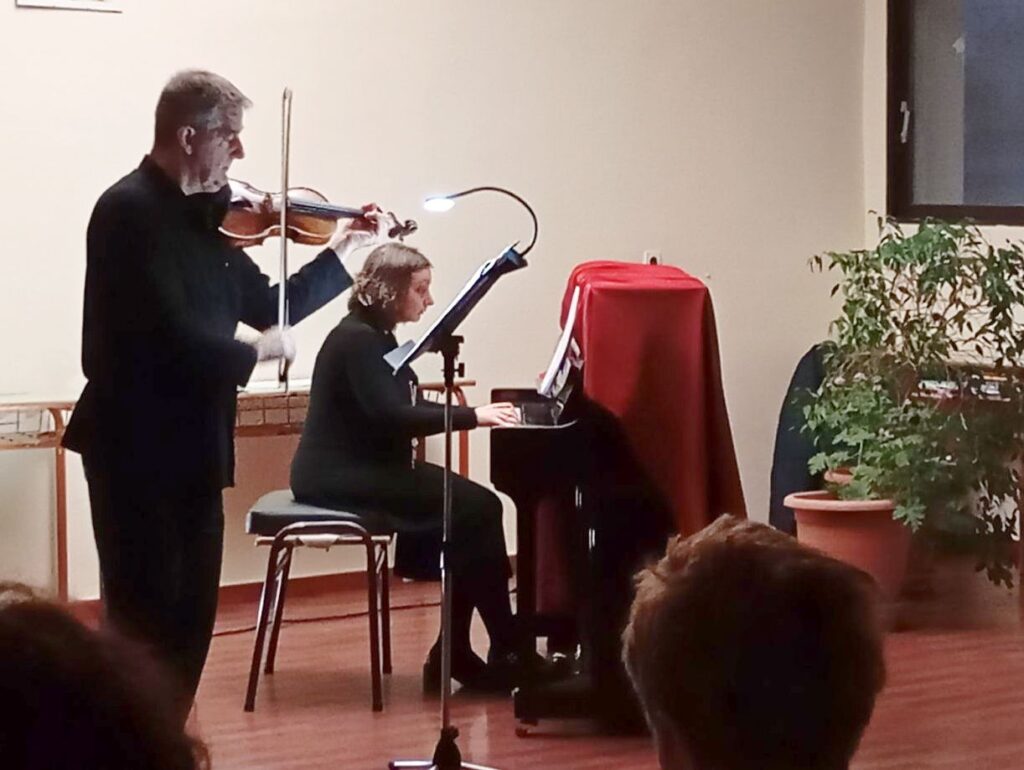 Το πρόγραμμα της – ενταγμένης στις εορταστικές εκδηλώσεις του ΔΩΚ με αφορμή τη συμπλήρωση των 50 χρόνων αδιάλειπτης προσφοράς στον πολιτισμό – βραδιάς επικεντρώθηκε σε: σονάτες για βιολί και πιάνο συνθετών από την Αγγλία (H.Eccles), το Βέλγιο (J.B.Loeillet), τη Γερμανία (G.Fr. Handel), την Τσεχία (Fr. Benda), την Ιταλία (G. Tartini) και τη Γαλλία (J.M. Leclair), που πλαισιώθηκαν από έργα σημαντικών ποιητών, όπως ο Ουίλιαμ Σαίξπηρ, ο Μωρίς Μαίτερλινγκ, ο Ράινερ Κούντσε, ο Κάρολος Τσίζεκ, ο Τσέζαρε Παβέζε και ο Τσαρλς Μπωντλαίρ.