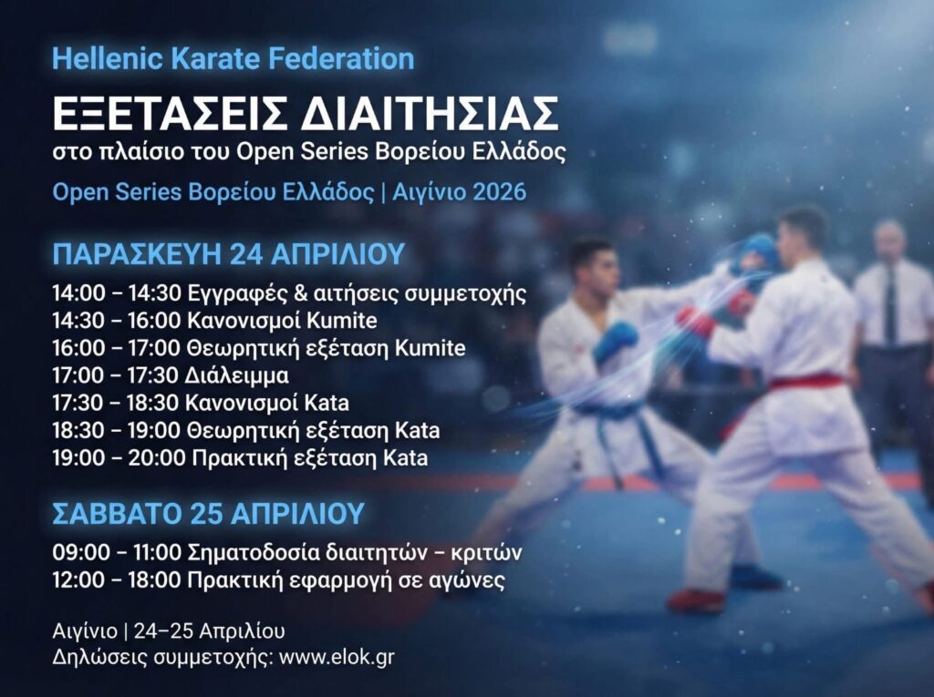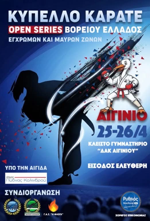 Στο Κλειστό Γυμναστήριο Αιγινίου θα πραγματοποιηθεί το Σάββατο 25 και την Κυριακή 26 Απριλίου το Κύπελλο Καράτε Open Series Βορείου Ελλάδος, μία ιδιαίτερα σημαντική αθλητική διοργάνωση για αθλητές και αθλήτριες έγχρωμων και μαύρων ζωνών.