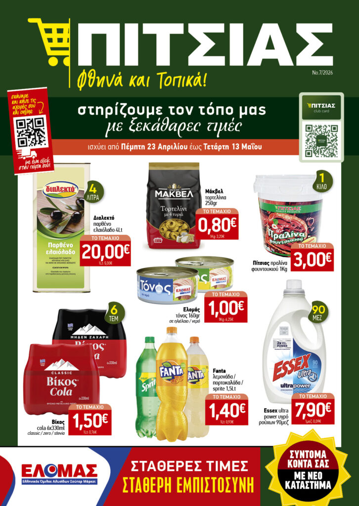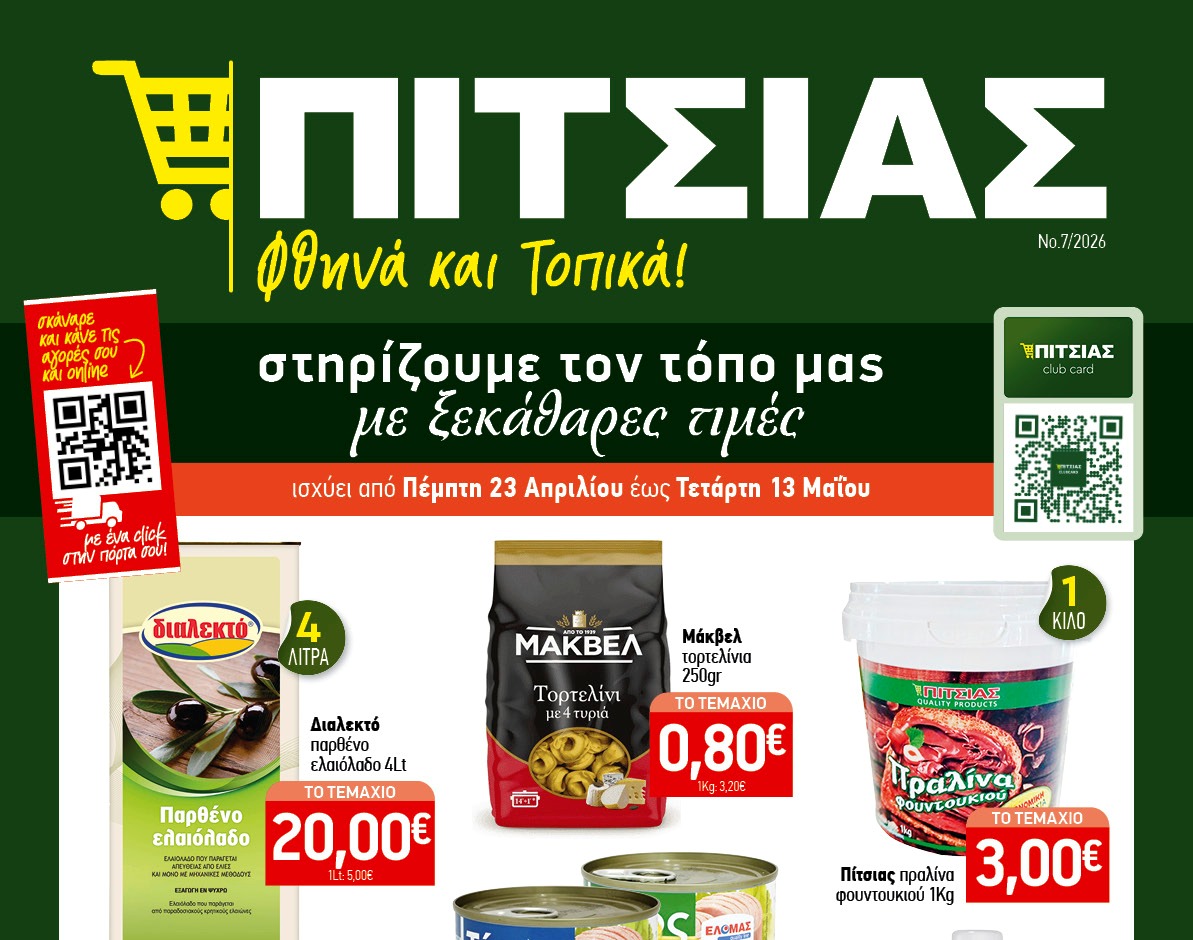 Νέο Φυλλάδιο ΠΙΤΣΙΑΣ ΜΑΡΚΕΤ από 23 Απριλίου έως και 13 Μαΐου Κοινωνία 21 Απριλίου 202621 Απριλίου 2026Pieria Social Ανοιξιάτικες τιμές ΠΙΤΣΙΑΣ ΜΑΡΚΕΤ στο νέο φυλλάδιο προσφορών από 23-4 έως και 13-5. Και στο https://pitsias.eu/filladia/