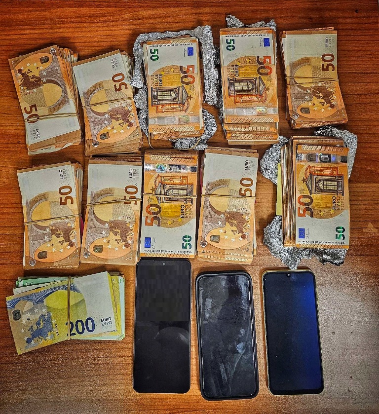 Μετά από συντονισμένες ενέργειες των αστυνομικών, εντοπίστηκαν τα προαναφερόμενα άτομα να επιβαίνουν σε όχημα και σε έρευνα του οχήματος βρέθηκε καλά κρυμμένο το χρηματικό ποσό των –54.350– ευρώ, το οποίο και αποδόθηκε στην παθούσα.