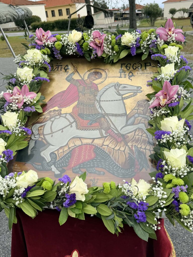 Με κάθε επισημότητα πραγματοποιήθηκε σήμερα το πρωί στην XXIV Τεθωρακισμένη Ταξιαρχία Λιτοχώρου, η τελετή εορτασμού του Προστάτη του Στρατού Ξηράς Μεγαλομάρτυρα Αγίου Γεωργίου.