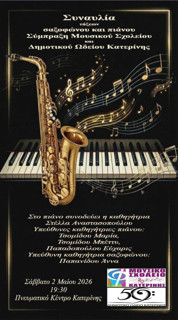 - Το Σάββατο 2 Μαΐου 2026 & ώρα στο 19:30 Πνευματικό Κέντρο