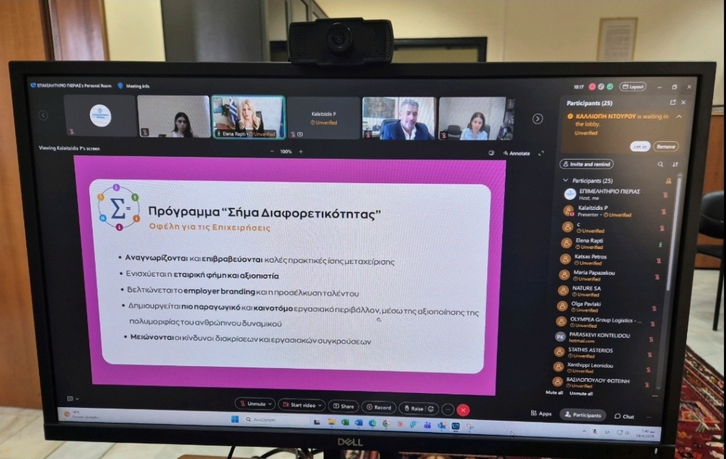 Με ιδιαίτερη επιτυχία και με ευρεία συμμετοχή εκπροσώπων της τοπικής επιχειρηματικότητας πραγματοποιήθηκε την Παρασκευή 24 Απριλίου, η ενημερωτική διαδικτυακή εκδήλωση για το Πρόγραμμα «Σήμα Διαφορετικότητας– Γίνε Εργοδότης Ίσων Ευκαιριών».