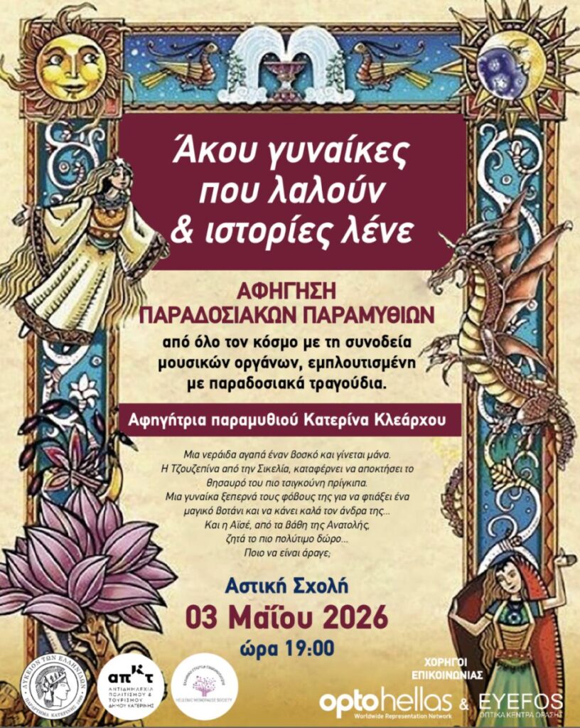 Το Λύκειον των Ελληνίδων Κατερίνης και η Ελληνική Εταιρεία Εμμηνόπαυσης Ν.Πιερίας διοργανώνουν από κοινού πολιτιστική εκδήλωση αφιερωμένη στην αστείρευτη δύναμη της γυναικείας ψυχής μέσα από λόγια και μνήμες που αντέχουν στον χρόνο.
